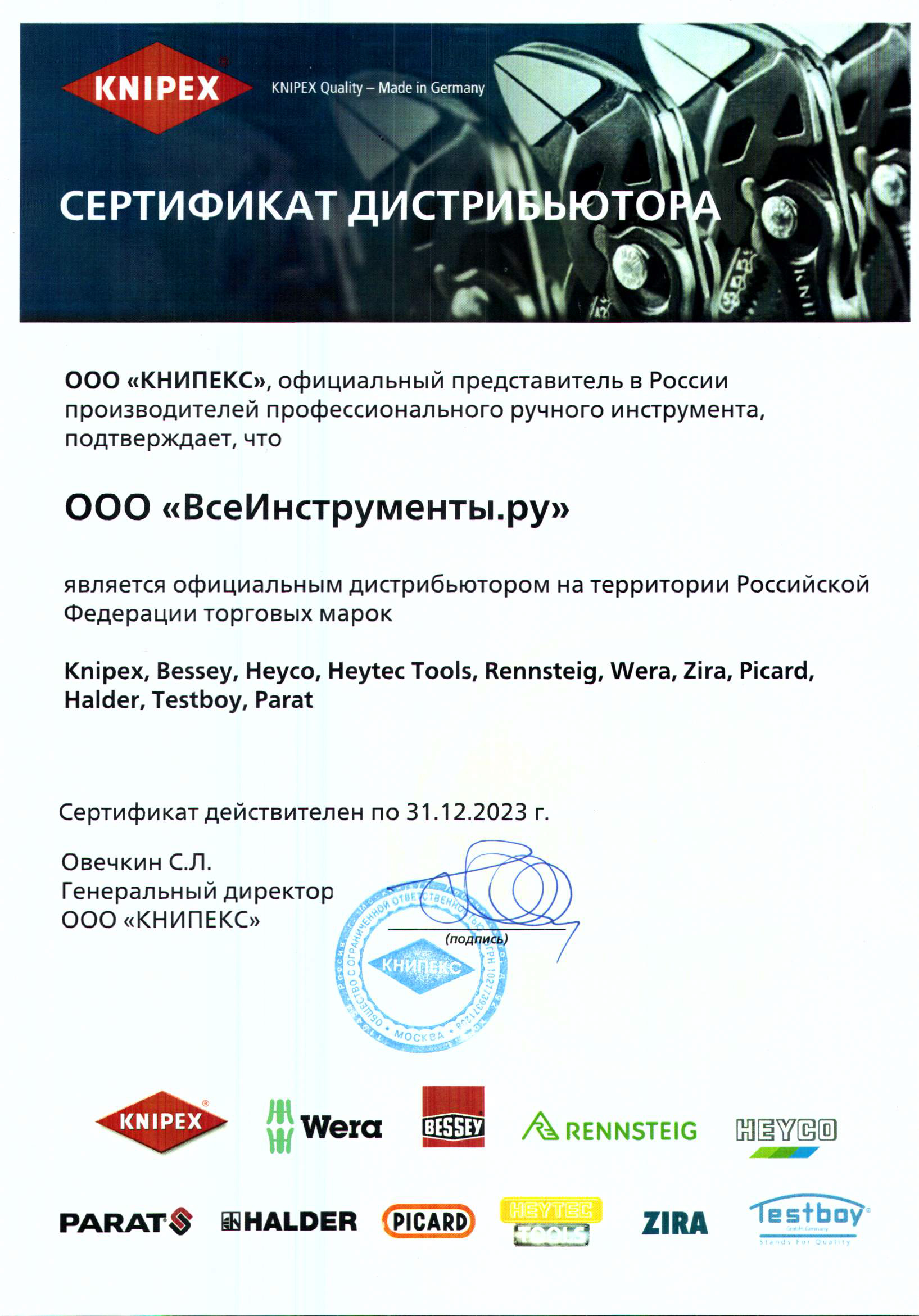 | Сертификат дилера | |